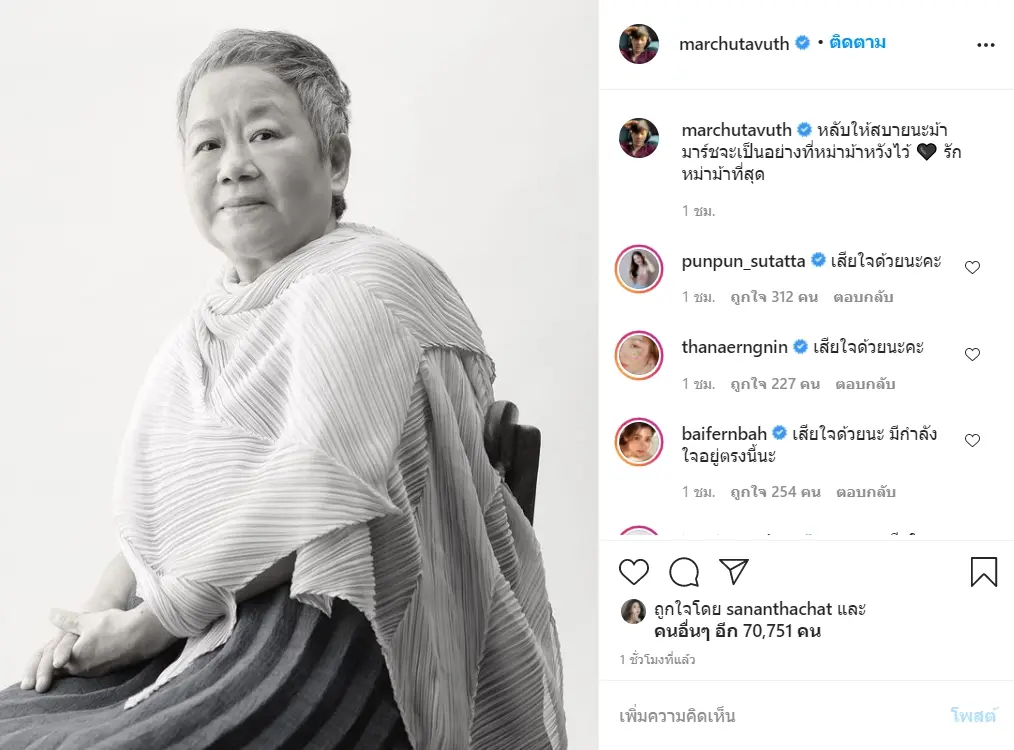 เป็นอีกหนึ่งข่าวเศร้าจากการสูญเสียบุคคลอันเป็นที่รัก เมื่อ มาร์ช จุฑาวุฒิ ได้ออกมาโพสต์ไว้อาลัยการจากไปของคุณแม่สุนันทา