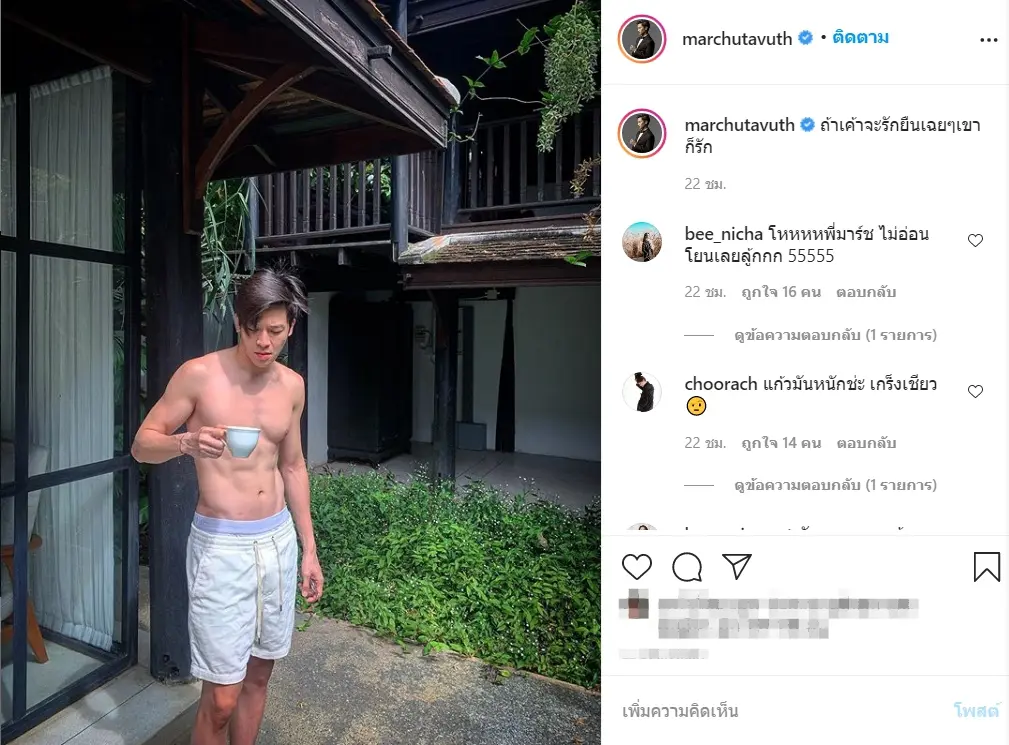 ทำเอาเหล่าแฟนคลับถถึงกับกรี๊ดแตกกันเลยทีเดียวสำหรับหนุ่มมาร์ชที่นานๆทีจะออกมาโชว์หุ่นแซ่บๆให้ได้มีอาหารตาอาหารใจให้เหล่าแฟนคลับได้กระชุ่มกระชวยกันทั้งไทม์ไลน์เลยทีเดียว
