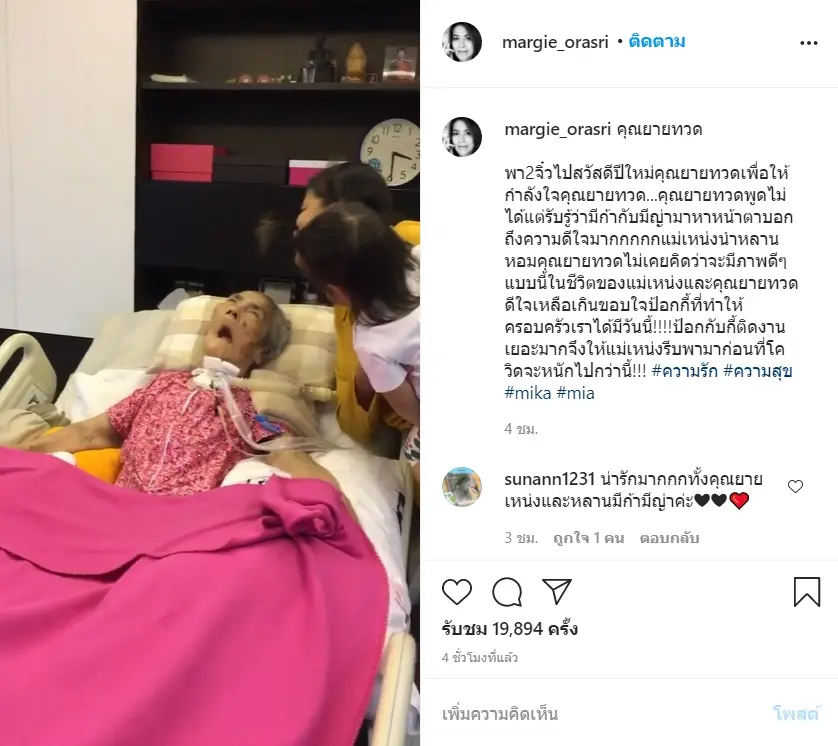 เรียกได้ว่าเป็นโมเมนต์สุดประทับใจจริงๆสำหรับคุณแม่ของ มาร์กี้ ราศรี อย่าง คุณแม่อรศรี ที่ออกมาโพสต์คลิปวิดีโอที่พาหลานอย่าง มีก้า-มีญ่า ไปเยี่ยมคุณยายทวด ซึ่งคุณแม่อรศรีได้เผยข้อความสุดประทับใจผ่านอินสตาแกรมว่า “คุณยายทวด…