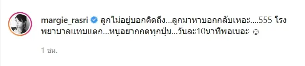 แต่เมื่อมาถึงแล้ว ทางด้านของ ป๊อก ก็ได้มีการบอกให้ มาร์กี้ พาลูกกลับบ้าน เพราะความป่วน ความซนของเด็กๆ เล่นทำเอาโรงพยาบาลแทบแตกกันเลย ป๊อกเองก็ยังบอกว่า เวลาที่ป่วยยาที่ดีที่สุดคือ 3 คนนี้ แต่ 2 คนเล็ก ไม่ต้องมาทุกวันก็ได้ เพราะเสี่ยงที่จะออกมาติดเชื้อ และ กลัวว่าจะมาตีหัวพ่อเข้าให้ เพราะถามตลอดเวลาว่า ที่หัวพ่อติดอะไร ด้าน มาร์กี้ เองก็บอกว่า มาวันละ10นาทีก็พอ เพราะหนูกดไปซะทุกปุ่มเลย