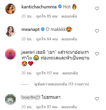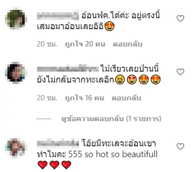 ล่าสุด มารีก็ขอมาเช็คเรตติ้งความฮอตกันอีกครั้งหนึ่ง โดยคราวนี้นอกจากจะคว้าเอาบิกีนี่ตัวจิ๋วมาใส่แล้ว ยังคอไปโพสต์ท่า นอนยกขาอวดหุ่นอยู่กลางทะเล ทำเอาทะเลเดือดไฟแทบลุกกันเลยทีเดียว ส่วนทางด้านแคปชั่นก็ถือว่าเด็ดไม่แพ้กัน โดยเธอเขียนว่า “แดดมันร้อนอะ อ้อนใครได้บ้าง ???☁️” งานนี้ทำเอากล่องคอมเมนต์แทบจะแตก เพราะเหล่าแฟนๆ และชาวเน็ตต่างก็พากันมาเสนอตัวขอเป็นคนให้สาวมารีอ้อนกันใหญ่ ก็ไม่รู้เหมือนกันว่าเธอจะเลือกใครมาเป็นคนอ้อนใส่ หรือว่าจะเป็นทายาทร้านทองคนนั้นกันนะ