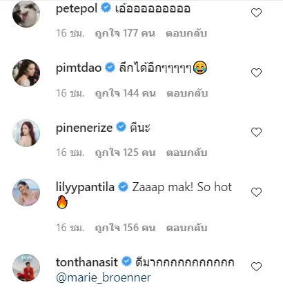 โดยเจ้าตัวได้มาโพสต์รูปลงในไอจีส่วนตัว โดยในรูป สาวมารีได้หยิบเอาชุดว่ายน้ำวันพีซสีฟ้าเขียวสดใส แต่เพิ่มความแซ่บด้วยการทั้งเว้าขาสูง และเว้าหลัง อวดผิวเนียนๆ ของตัวเอง โดยคราวนี้เธอมาพร้อมกับแคปชั่นสั้นๆ ว่า “Eyes up here ? ☁️” งานนี้บอกเลยว่า ทำเอาชาวเน็ตแตกตื่น แห่กันไปกดไลค์กดคอมเมนต์กันยกใหญ่ ทางด้านเพื่อนร่วมวงการเองก็ไม่พลาดที่จะมาคอมเมนต์แซวความเผ็ดของนักแสดงสาวคนสวย