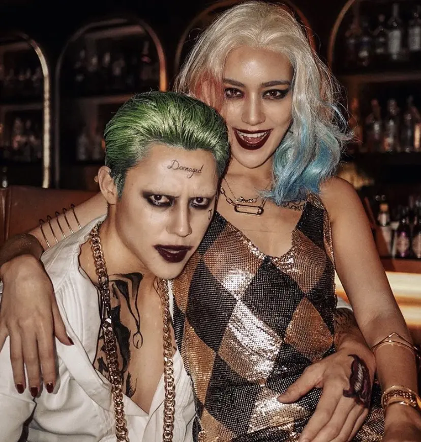 แต่งานนี้ทั้งคู่ก็ลุกขึ้นมาแปลงโฉม เป็นตัวละคร ฮาร์ลีย์ ควินน์ และ โจ๊กเกอร์ ที่ถึงแม้ในบทบาทจะเป็นคู่ปรับกัน แต่ในชีวิตจริงแล้วทั้งคู่เค้ารักกันมากนะจ๊ะ