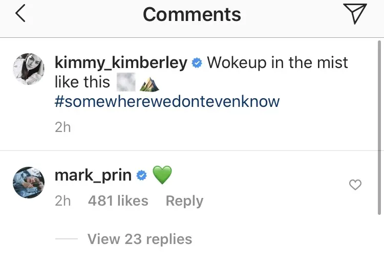 งานนี้หนุ่มหมากยังโชว์หวานด้วยการไปคอมเมนต์ใต้รูปของคิมเบอร์ลี่ ไม่ต้องพูดอะไรมาก ก็แค่ส่งหัวใจให้ดวงนึงเท่านั้นเอง