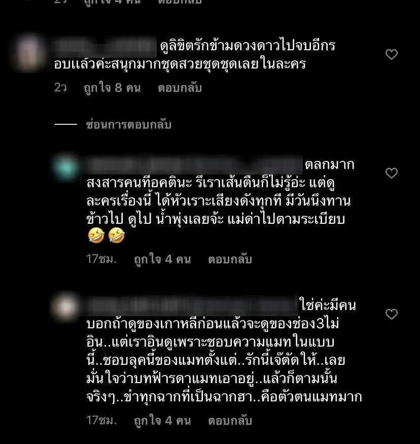 ล่าสุด ละครเรื่องนี้ก็จบไปนานแล้ว แต่กระแสละครรีเมคฟอร์มยักษ์ เรื่อง ลิขิตรักข้ามดวงดาว ที่บอกเลยว่าละครออนแอร์เมื่อไหร่ ติดเทรนด์ทวิตเทอร์ทุกครั้ง ตอนนี้ก็กลับมาทำให้สาวแมทน่าจะยิ้มชื่นใจกันอีกครั้ง เพราะได้มีชาวเน็ตบางส่วนเข้าไปคอมเมนต์เพื่อส่งกำลังใจให้กับเธอและยังบอกอีกว่าละครเรื่อง ลิขิตรักข้ามดวงดาวนั้น สนุก และตลกมาเลยทีเดียว เรียกได้ว่า กระแสละครปังมากจริงๆแม้จะจบลงไปแล้วก็ตาม