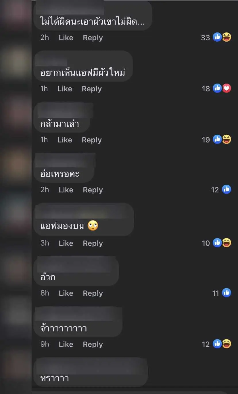 ล่าสุด เหล่าชาวเน็ตได้มีฟีดแบคตอบกลับกรณีที่เธอเผยว่าไม่ได้ผิดศีลธรรม โดยได้มีการพูดถึง แอฟ ทักษอร อดีตภรรยาของ สงกรานต์ เตชะณรงค์ อีกด้วย โดยหลายๆเสียงยังคงไม่มูฟออน อาทิเช่น