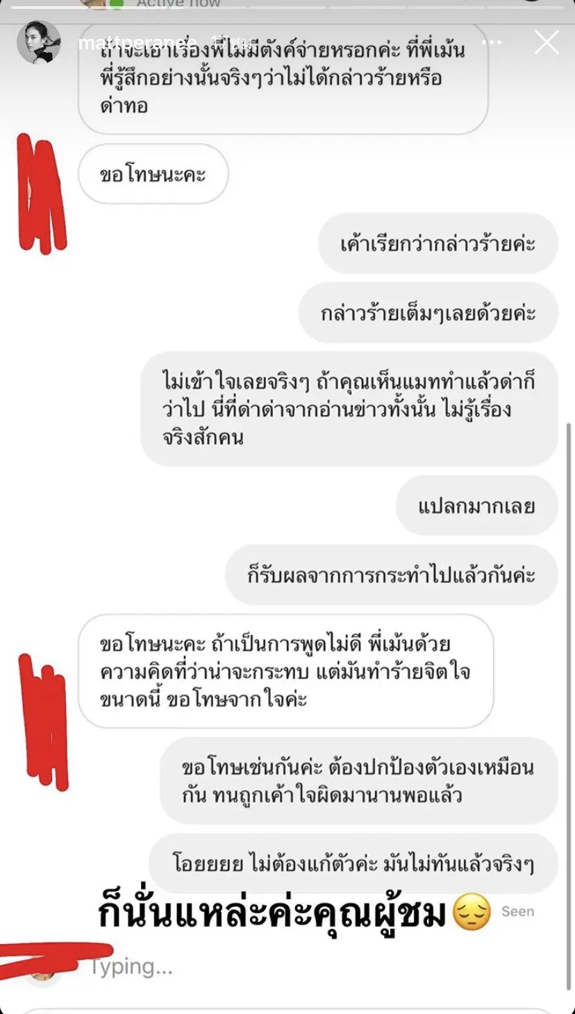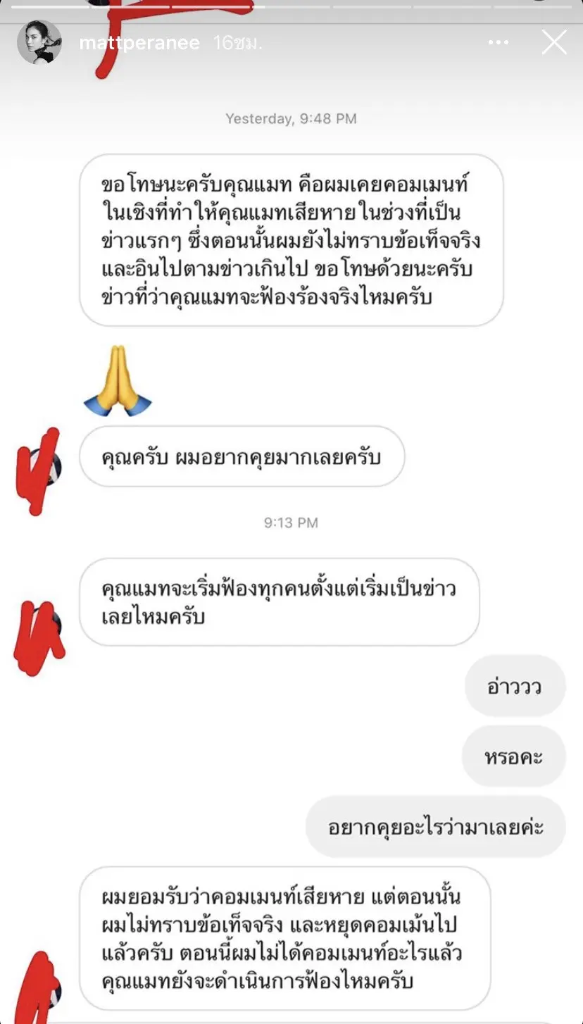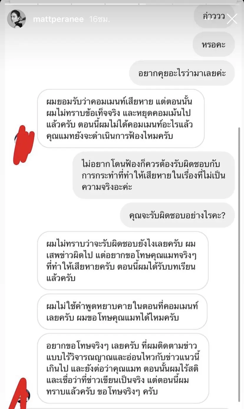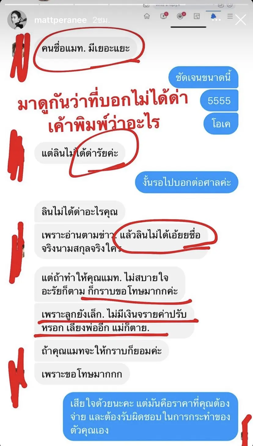 ก็ทำเอาหลายคนอดฮือฮาไม่ได้ ซึ่งก็ได้มีการรวบรวมหลักฐานในการฟ้องอยู่ในขณะนี้ โดยชาวเน็ตที่เคยแซะ สาวแมท นั้นต่างก็ออกมาขอโทษขอโพยกันยกใหญ่ แต่ก็ไม่ทันแล้ว แถมสาวแมทนั้นยังคงแคปหลักฐานที่คุยแชทกับชาวเน็ตอยู่เรื่อยๆอีกด้วย