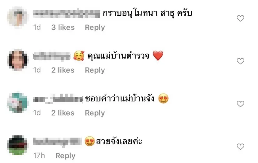 ทำเอาหลายๆคนเข้ามาคอมเมนต์เป็นเสียงเดียวกันว่า คุณแม่บ้านตำรวจ , ชอบคำว่าแม่บ้านจัง อีกทั้งยังชมสาวแมทว่า น่ารัก เป็นจำนวนมากอีกด้วย