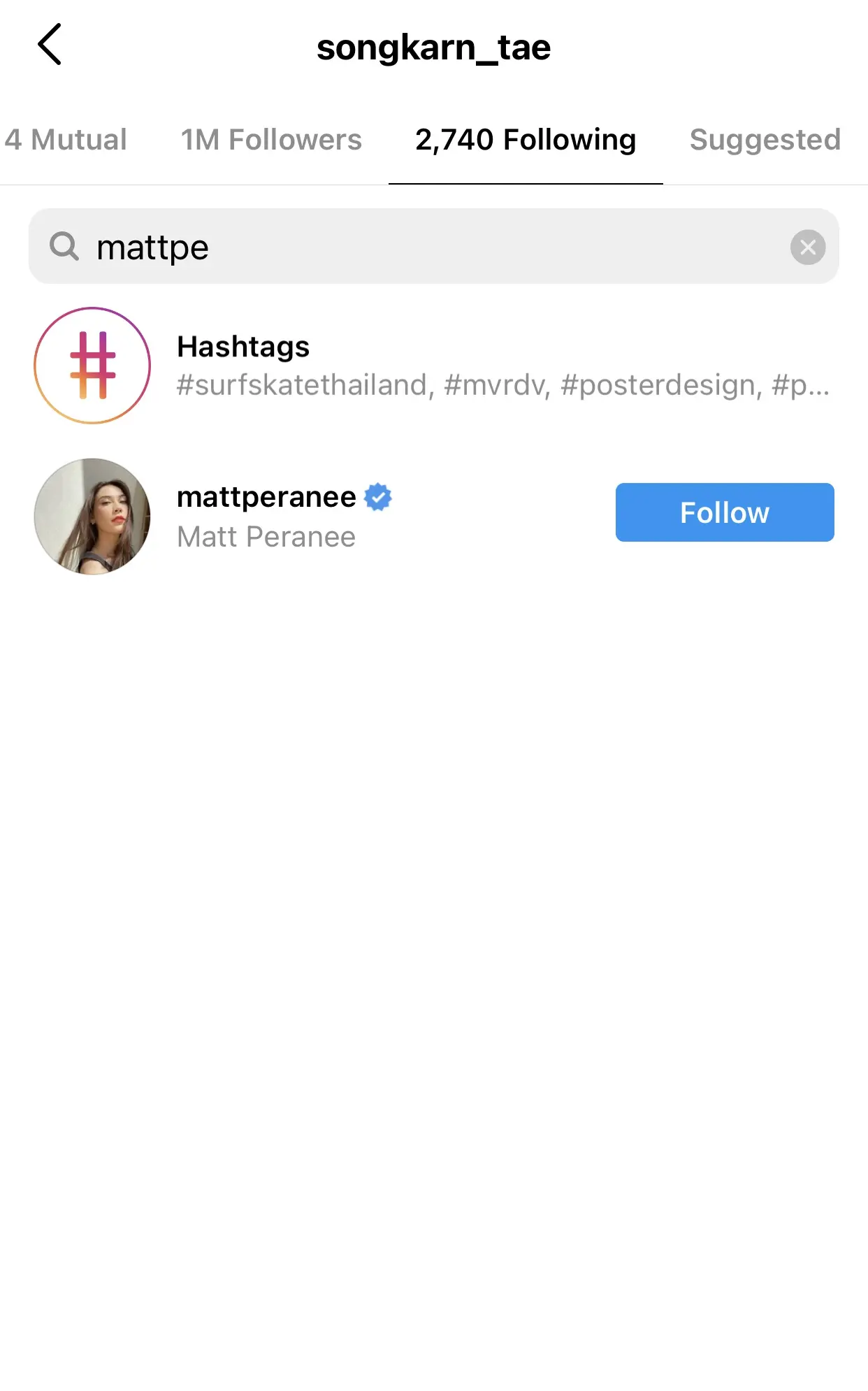 อย่างไรก็ตาม ล่าสุด เมื่อค้นหาผู้ที่สาวแมทกำลังติดตามอยู่ ชื่อของหนุ่มสงกรานต์ก็กลับเข้ามาอยู่ในลิสต์เป็นที่เรียบร้อยแล้ว เป็นอันจบการคาดเดาต่าง ๆ นา ๆ ว่าเตียงหัก หมดรักกันหรือไม่ เพราะสาวแมทเองก็ได้ออกมาเคลียร์ประเด็นนี้ผ่านรายการครอบครัวบันเทิงออนไลน์ ว่า มือลั่นเฉยๆ แบบไม่รู้ตัว มารู้อีกทีก็ตกเป็นข่าวเสียแล้ว