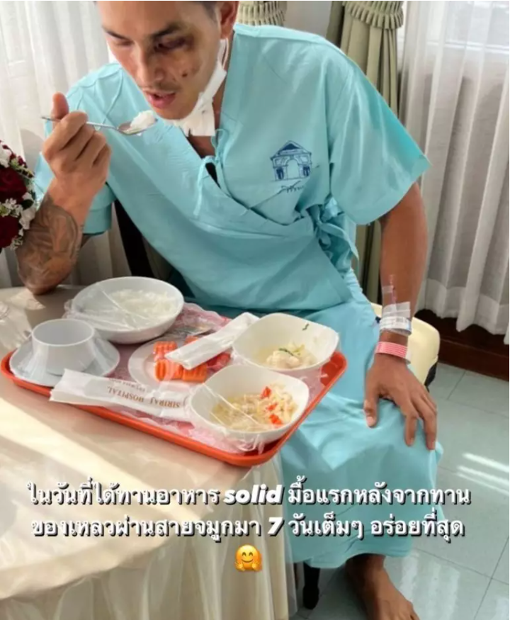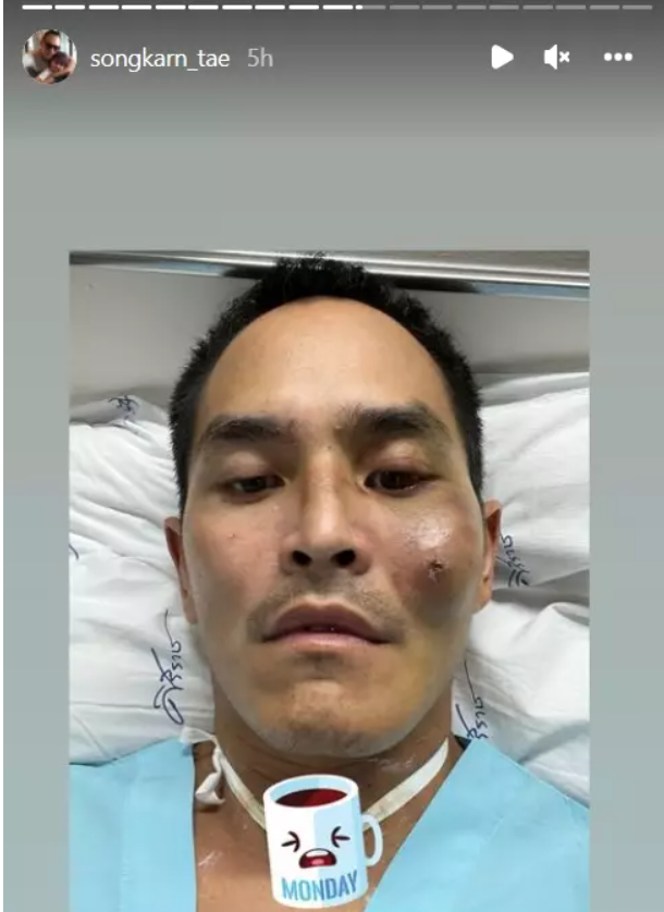 ตอนแรกดูภายนอกเหมือนจะไม่เป็นอะไร มีแค่คางแตก แก้มแตก แต่ดูไปดูมาเหมือนอาการจะค่อนข้างหนัก จึงตัดสินใจนำตัวเข้ามารักษาที่กรุงเทพฯ หลังจากนั้นก็ได้ตรวจเอ็กซเรย์และตรวจเช็กภายใน กระดูกซี่โครงชิ้นที่หนึ่งหัก แทงปอดจนทะลุรั่ว หมอต้องเจาะปอดใส่ท่อเพื่อระบายเลือด แต่ตอนนี้อาการดีขึ้นมากแล้ว คาดว่าอีกประมาณ 2-3 วันถึงจะออกจากโรงพยาบาลได้