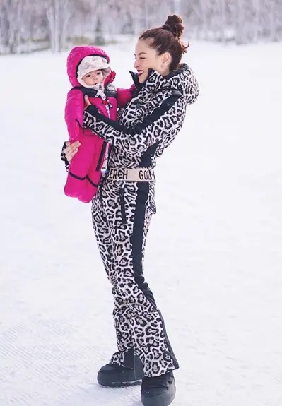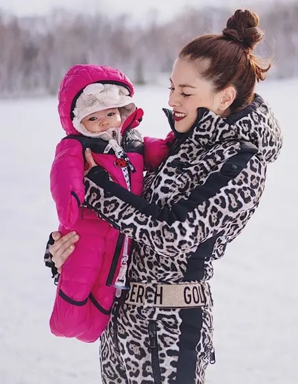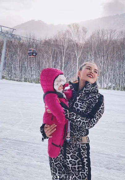 ส่วนด้านคุณแม่นั้นก็แซ่บไม่แพ้กันเลยทีเดียว แม้อากาศจะหนาวก็ไม่หวั่น ขนาดเป็นคุณแม่ลูกสองแล้วยังคงความสวยปัง แถมยังหุ่นเซี้ยะสุดๆ