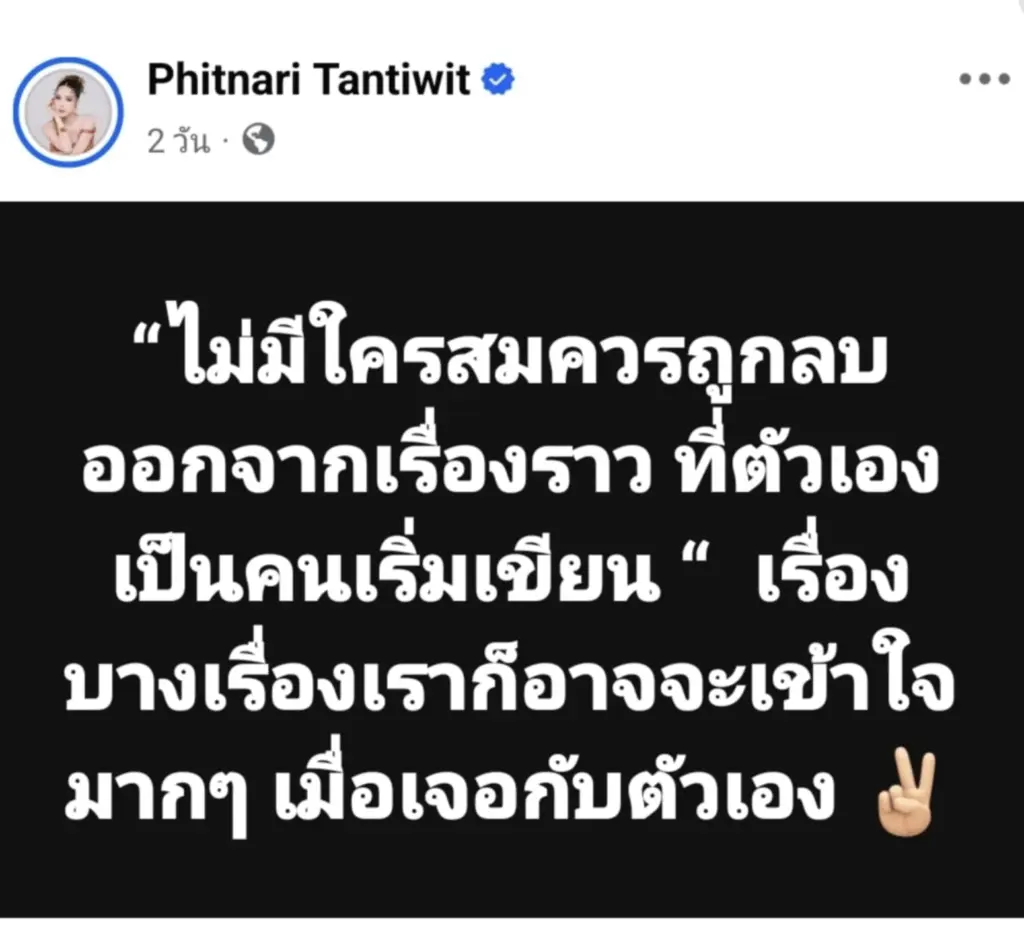 - “ไม่มีใครสมควรถูกลบออกจากเรื่องราว ที่ตัวเองเป็นคนเริ่มเขียน”