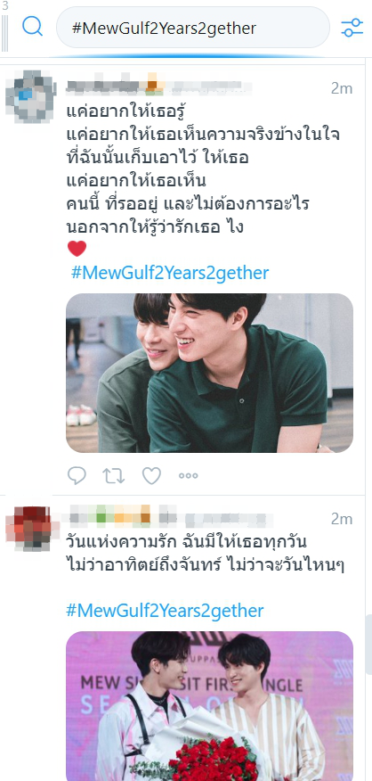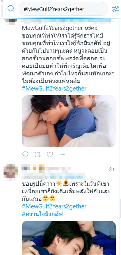 โดยงานนี้ ชาวหวานใจมิวกลัฟก็ร่วมส่งโมเม้นท์ประทันใจ ไม่ว่าจะเป็นรูปคู่ หรือรูปแคปที่มิว-กลัฟ ได้ฟอลกันทางไอจีวันแรก พร้อมทั้งส่งต่อคำขอบคุณและคำอวยพรที่สร้างความสุขให้กับแฟนคลับมาอย่างเสมอผ่านทางแฮชแท็ก #MewGulf2Years2gether นับเป็นอีกหนึ่งโมเม้นท์สุดประทับใจที่อยากให้มีขึ้นในทุก ๆ ปีแบบนี้ไปเรื่อย ๆ เลย
