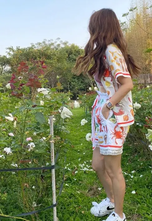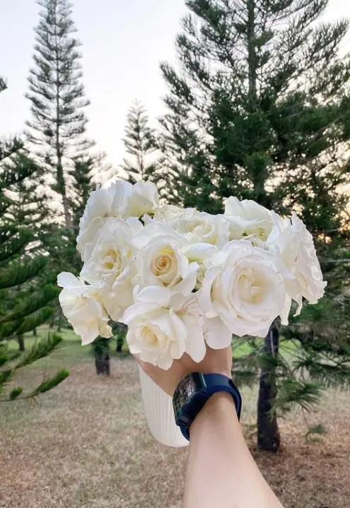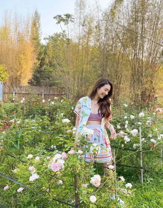 ล่าสุด เจ้าตัวได้มีการโพสต์ภาพ ขณะที่กำลังยืนท่ามกลางสวนกุหลาบสีขาว พร้อมข้อความว่า “ต้นกุหลาบจากงานแต่งงานเอามาปลูกที่เขาใหญ่โตสวยงามมากเลยยย??”