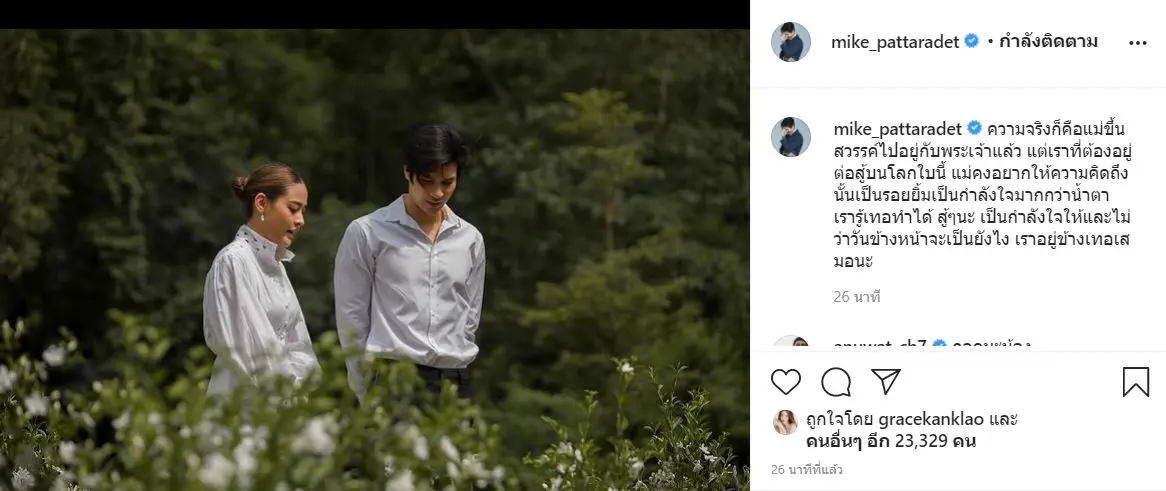 ไมค์ ภัทรเดช โพสต์ภาพหลัง ปุ๊กลุก ฝนทิพย์ ส่งคุณแม่ไปสวรรค์ครั้งสุดท้าย แม้ความสัมพันธ์ฉันคนรักจะจบลง แต่มิตรภาพยังอยู่เสมอ
