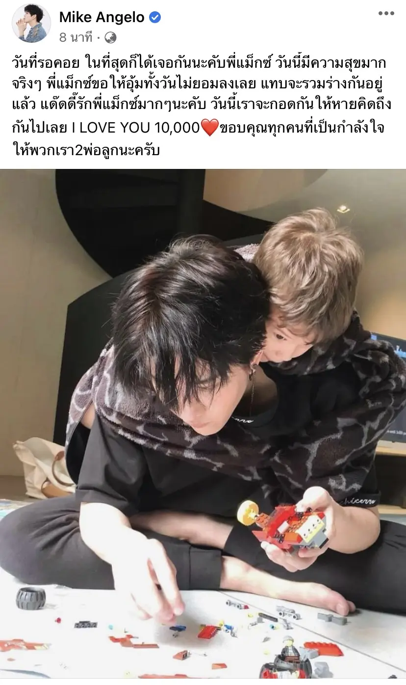ล่าสุด วันนี้ ไมค์ ได้มีการออกมาเคลื่อนไหว พร้อมโพสต์ภาพคู่กับน้องแม็กเวลล์ พร้อมข้อความว่า “วันที่รอคอย ในที่สุดก็ได้เจอกันนะคับพี่แม็กซ์ วันนี้มีความสุขมากจริงๆ พี่แม็กซ์ขอให้อุ้มทั้งวันไม่ยอมลงเลย แทบจะรวมร่างกันอยู่แล้ว แด๊ดดี๊รักพี่แม็กซ์มากๆนะคับ วันนี้เราจะกอดกันให้หายคิดถึงกันไปเลย I LOVE YOU 10,000❤️ ขอบคุณทุกคนที่เป็นกำลังใจให้พวกเรา 2 พ่อลูกนะครับ”