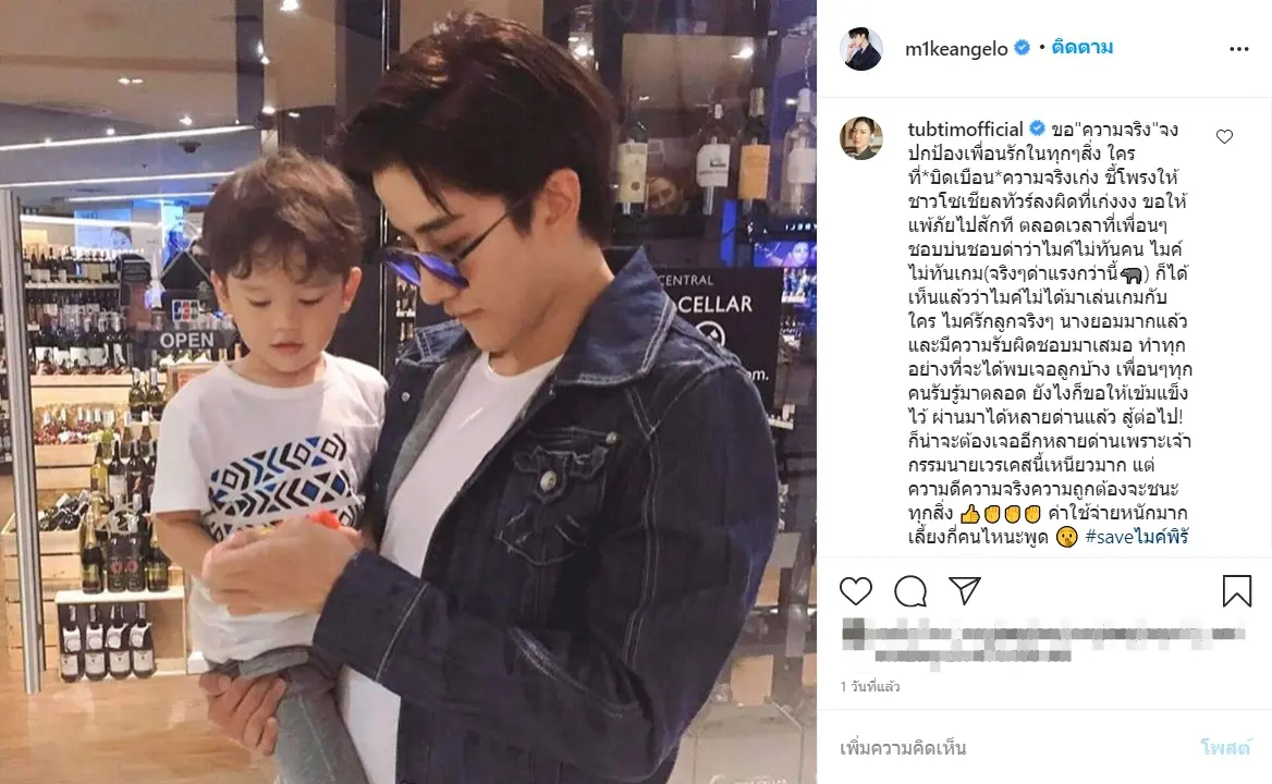 “ขอ”ความจริง”จงปกป้องเพื่อนรักในทุกๆสิ่ง ใครที่บิดเบือนความจริงเก่ง ชี้โพรงให้ชาวโซเชียลทัวร์ลงผิดที่เก่งงง ขอให้แพ้ภัยไปสักที ตลอดเวลาที่เพื่อนๆชอบบ่นชอบด่าว่าไมค์ไม่ทันคน ไมค์ไม่ทันเกม(จริงๆด่าแรงกว่านี้?) ก็ได้เห็นแล้วว่าไมค์ไม่ได้มาเล่นเกมกับใคร ไมค์รักลูกจริงๆ นางยอมมากแล้ว และมีความรับผิดชอบมาเสมอ ทำทุกอย่างที่จะได้พบเจอลูกบ้าง เพื่อนๆทุกคนรับรู้มาตลอด ยังไงก็ขอให้เข้มแข็งไว้ ผ่านมาได้หลายด่านแล้ว สู้ต่อไป! ก็น่าจะต้องเจออีกหลายด่านเพราะเจ้ากรรมนายเวรเคสนี้เหนียวมาก แต่ความดีความจริงความถูกต้องจะชนะทุกสิ่ง ค่าใช้จ่ายหนักมาก เลี้ยงกี่คนไหนพูด”