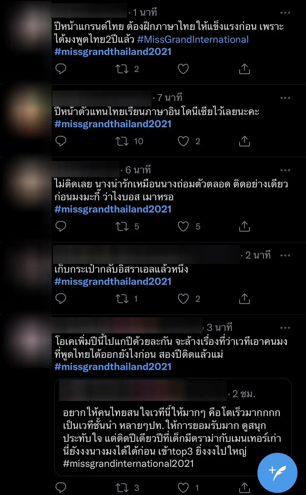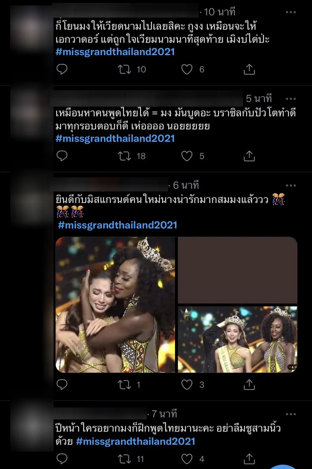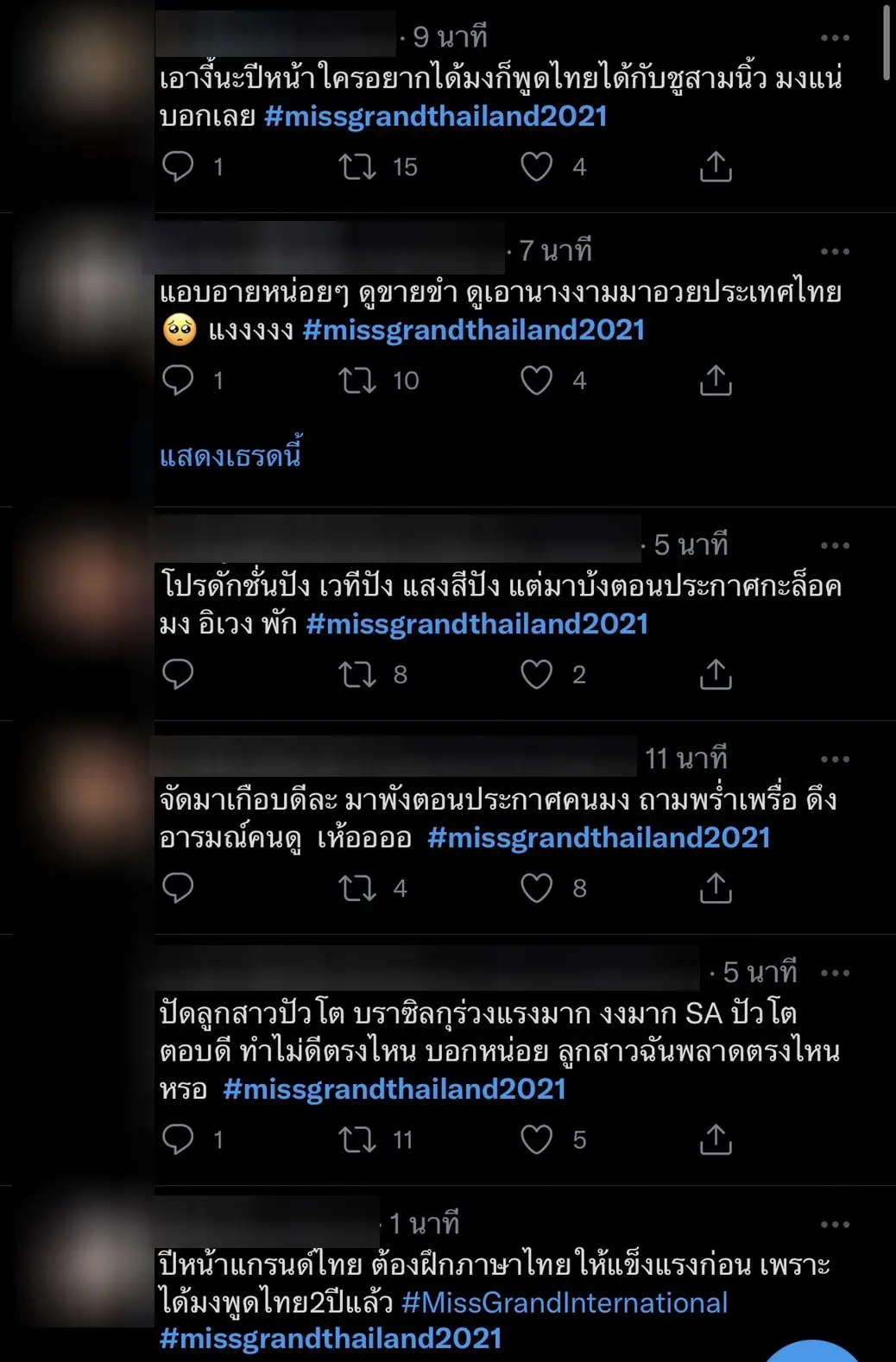 อย่างไรก็ตาม กลิ่นดราม่าก็ยังซัดไม่แพ้กัน ซึ่งก็ได้แฟนนางงามบางส่วนที่ไม่เห็นด้วยกับการได้รับมงของเธอในครั้งนี้ พร้อมกับให้เหตุผลว่า เอางี้นะปีหน้าใครอยากได้มงก็พูดไทยได้กับชูสามนิ้ว มงบอกเลย , แอบอายหน่อยๆ ดูขายขำ ดูเอานางงามมาอวยประเทศไทย และอื่นๆอีกมากมาย