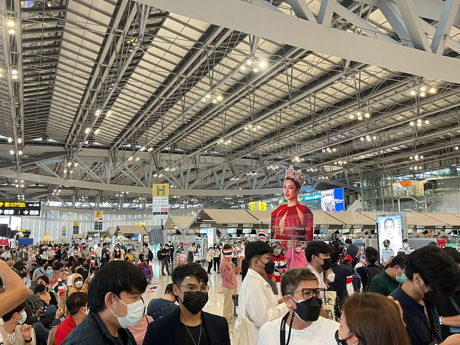 ล่าสุด ทีมข่าวบันเทิง Bright Today ลงพื้นที่สนามบินสุวรรณภูมิเกาะติดบรรยากาศ ร่วมส่งกำลังใจ แอนชิลี สก๊อต-เคมมิส และ ให้สัมภาษณ์กับทางสื่อมวลชน โดยบรรยากาศหนาแน่นไปด้วยความอบอุ่น และความยินดีจากเหล่าแฟนนางงาม