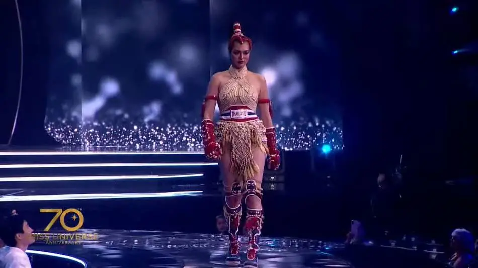 และปิดจบด้วยชุดประจำชาติ แน่นอนว่า แอนชิลี ปรากฎตัวด้วยชุด นางคาด หรือ “Woman of steel” ขึ้นไฟท์บนเวทีในครั้งนี้ให้ประจักษ์แก่สายตาชาวโลก เรียกได้ว่าชุดประจำชาติไทยนั้นสวยงามโดดเด่นไม่แพ้ชุดประจำชาติอื่นๆ เลยทีเดียว