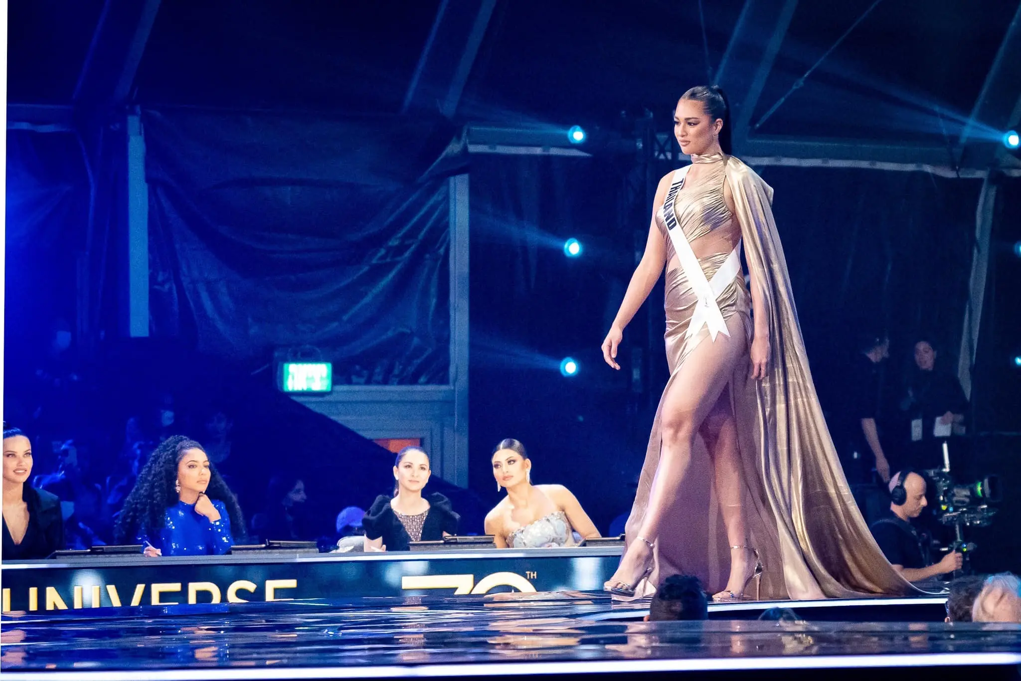 โค้งสุดท้ายก่อนวันชิงมงในคืนที่ผ่านมา แอนชิลี สก๊อต-เคมมิส ตัวแทนสาวงามจากประเทศไทย ที่ไปชิงมงกุฏ Miss Universe 2021 ที่ประเทศอิสราเอล โดยในรอบ Preliminary ก็ได้ผ่านพ้นไปเป็นที่เรียบร้อยแล้ว ซึ่งแอนชิลีก็พิสูจน์ความสามารถและความงามของเธอได้อย่างสมบูรณ์แบบ ไม่ว่าจะในรอบชุดว่ายน้ำหรือชุดราตรี โดยในรอบชุดราตรี แอนก็ปรากฏตัวในชุดราตรีสีทองเมทัลลิก เทคนิคการจับเดรป และเผยรูปร่างของเธอผ่านดีไซน์ชุดโค้งเว้าที่ตอกย้ำความงามของผู้หญิงที่หลากหลาย ตามสโลแกน #RealSizeBeauty