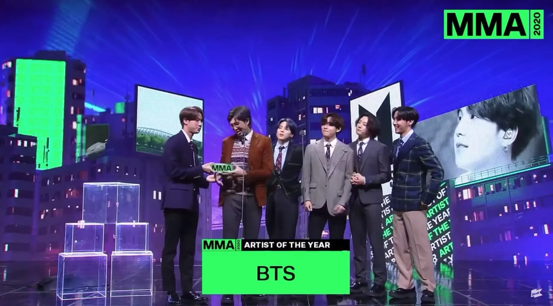 BTS เมื่อวันที่ 5 ธันวาคมที่ผ่านมา ได้มีงานประกาศรับรางวัลไลฟ์ออนไลน์ของ Melon Music Awards (MMA 2020) ตามมาตรการควบคุมโรคระบาด COVID-19