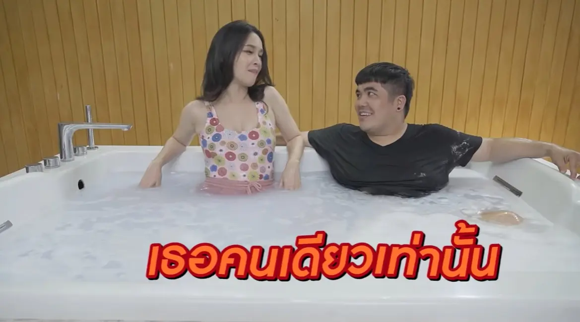 โอ้โฮ แต่ก่อนลงอ่างแช่น้ำ โม อมีนา ก็ไม่ทำให้ผิดหวัง เปลี่ยนชุดว่ายน้ำ พร้อมกับเสิร์ฟท่ายาก ขี่คอ แจ็ค แฟนฉัน กลางสระว่ายน้ำกันไปเต็มๆ จนหนุ่มๆหลายคนต่างอิจฉาตาร้อน พร้อมกับยกให้ แจ็ค แฟนฉัน เป็นคนมีบุญทันที