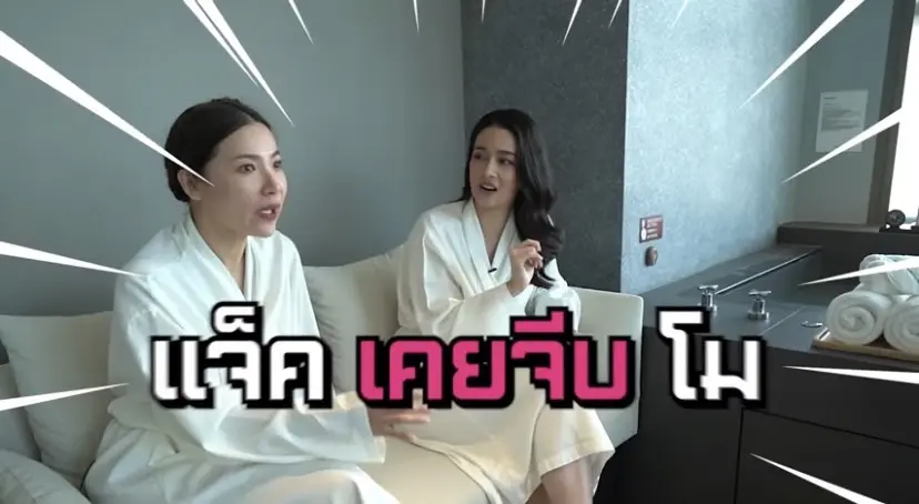 โม : ตอนแรกแจ็คจีบโมอ่ะ แจ็คชวนโมไปบ้านอย่างเดียวเลย เอะอะเล่นเกมบ้านเราไหม บ้านเราโซฟานุ่มนะ บ้านเราทีวีใหญ่ บ้านเราเกมเยอะมาก แล้วพอเราไปปุ๊ปเค้าก็คือหน้าแดง มันจะมีแช่พลูวิลล่ากันอะไรแบบนี้