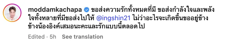 “ขอส่งความรักทั้งหมดที่มี ขอส่งกำลังใจทั้งหลายที่มีไปให้ @ingshin21 ไม่ว่าอะไรจะเกิดขึ้นขออยู่ข้างข้างน้องอิงค์เสมอนะคะ”