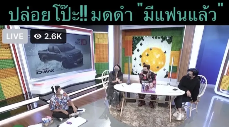 ไม่เพียงเท่านี้ รถเมล์ คะนึงนิจ ยังมีการบอกอีกว่า หนูเขินเพราะอะไรรู้ป้ะ ไม่น่าทำบ้านไม่เสร็จสักทีอ่ะ (หัวเราะ) หนูดีใจกับพี่ถ้าพี่เจอคนที่ดี หนุ่ม กรรชัย ถามอีก คบกันนานแค่ไหนแล้ว มดดำ จึงตอบอีกว่า มึงอ่านข่าวไปเถอะ โอ๊ย แก่แล้วหนุ่ม อ่านข่าว ไม่มี!!