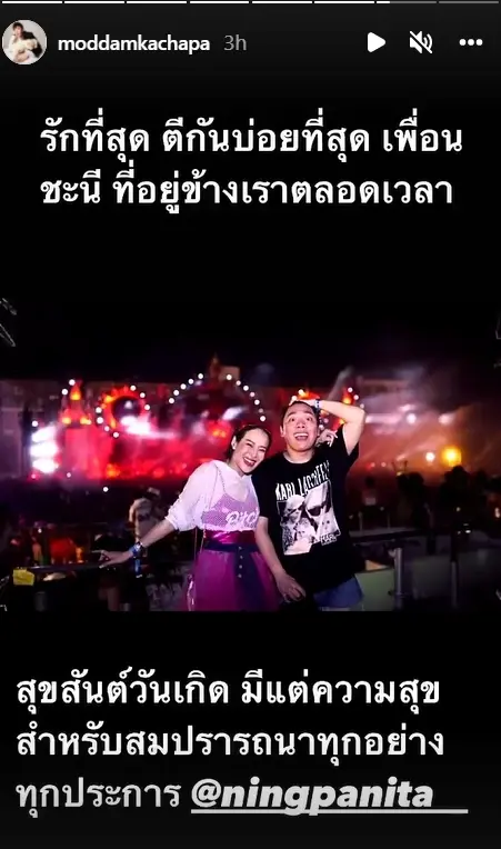 ล่าสุด มดดำ คชาภา ก็ได้ออกมาโพสต์ข้อความร่วมอวยพรวันเกิดสาวหนิงผ่าน Instagram ล่าสุดของตนพร้อมกับอวยพรวันเกิดสุดว้าวทำเอาใครหลายคนต่างพากันอดอมยิ้มไม่ได้ถึงความผูกพันธ์ของเพื่อนสนิทหลังเห็นคำอวยพรของมดดำที่ออกมาเขียนว่า ตีกันบ่อยที่สุด