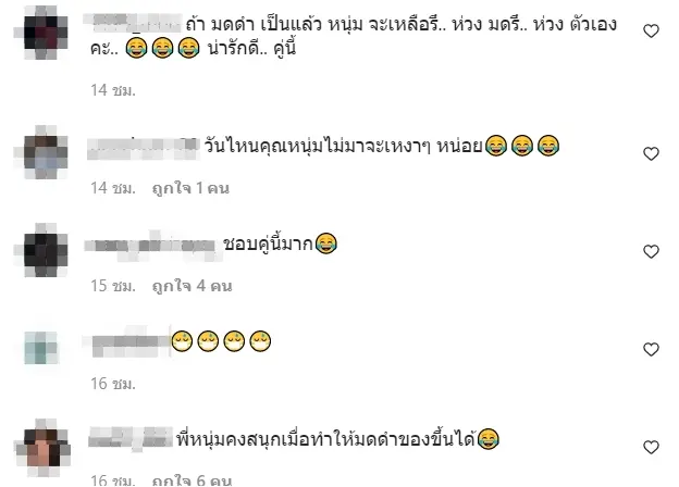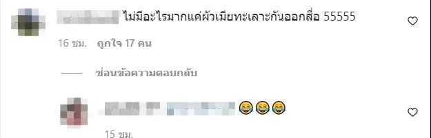 งานนี้ก็มีคนเข้ามาแซวทั้งคู่กันอย่างสนุกสนาน ว่าเป็นคู่ ผัว-เมีย ทะเลาะกัน ตัวไม่มมาแต่ก็ยังโทรเข้ามา สงสัยคิดถึง