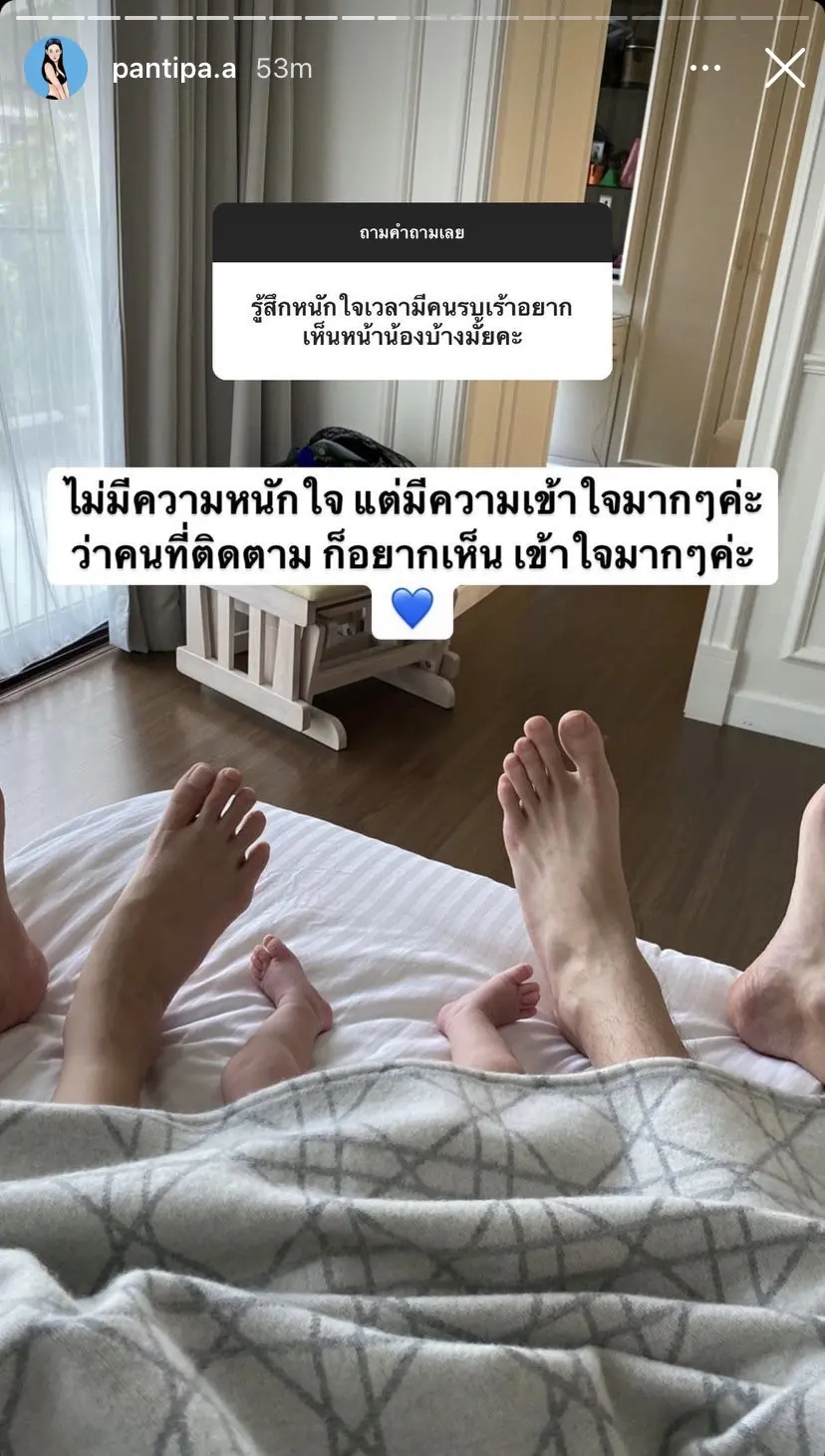 ต่อมา ได้มีแฟนๆส่งข้อความเข้ามาถามเธอผ่านทางสตอรี่อินสตาแกรมอีกครั้งว่า รู้สึกหนักใจเวลามีคนรบเร้าอยากเห็นหน้าน้องบ้างมั้ยคะ ซึ่งรอบนี้เธอก็ได้มีการตอบกลับไปว่า ไม่มีความหนักใจแต่มีความเข้าใจมากๆค่ะว่าคนที่ติดตามก็อยากเห็น เข้าใจมากๆค่ะ