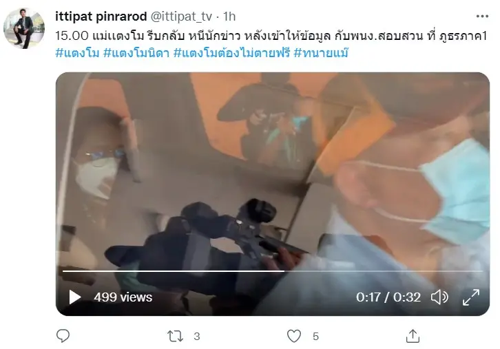 จากนั้นเมื่อเสร็จสิ้นการเข้าพบเจ้าหน้าที่ตำรวจ ผู้ใช้งานทวิตเตอร์ @ittipat_tv ซึ่งเป็นผู้สื่อข่าวประจำสำนักข่าวแห่งหนึ่ง ก็ได้โพสต์ข้อความอัปเดตว่า…