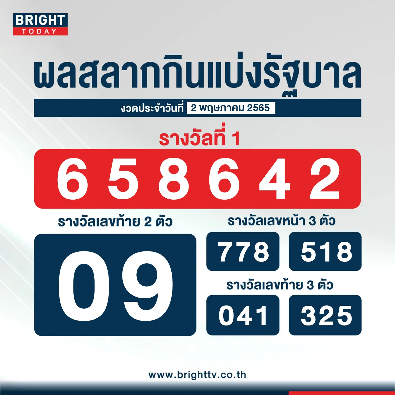 ตรวจหวย 2 พฤษภาคม 2565 ผลสลากกินแบ่งรัฐบาล รางวัลที่ 1 คือ 658642