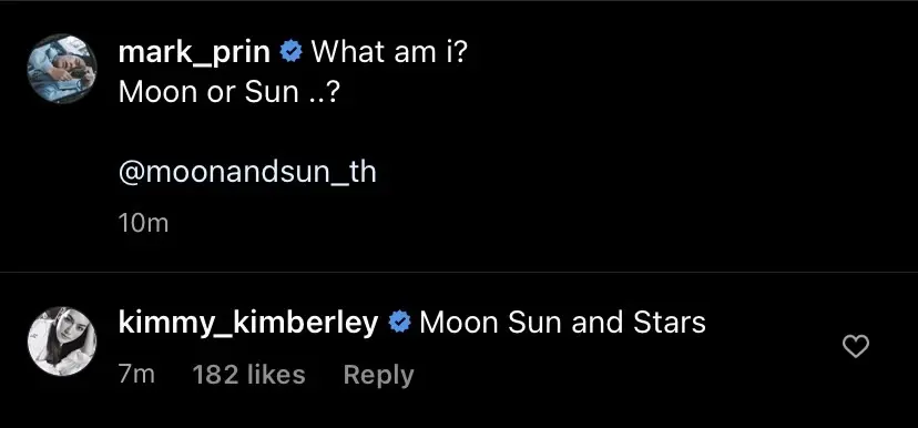 หมาก ปริญ โพสต์แคปชั่นภาษาอังกฤษ What am i? Moon or Sun ..? คิมเบอร์ลี่ คอมเมนต์ตอบกลับทันที งานนี้บรรดาแฟนคลับต่างหวีดยกใหญ่