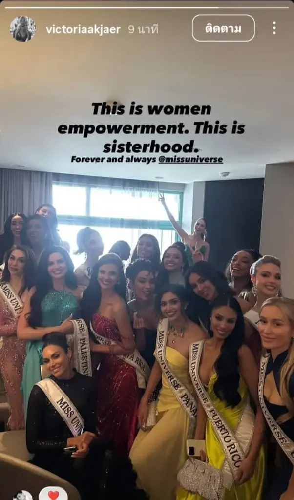 จากนั้นเธอได้โพสต์ภาพร่วมกับผู้เข้าประกวดหลายประเทศในอินสตาแกรม พร้อมข้อความว่า