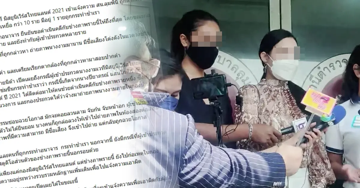 ตัวแทนผู้เสียหาย 2 คน จากเวทีการประกวด MUT2021 เข้าพบเจ้าหน้าที่ตำรวจ แจ้งความเอาผิดช่างภาพชื่อดัง หลังก่อเหตุกระทำชำเรา ผู้เข้าประกวดในกอง ยืนยัน ดำเนินคดีจนถึงที่สุด