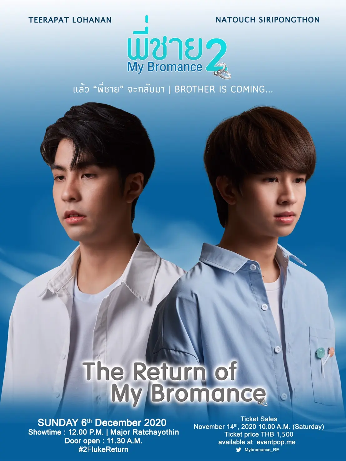 ใครที่กำลังคิดถึงภาพยนตร์ต้นแบบความจิ้นสายวายที่ดังเป็นพลุแตก เมื่อปี 2557 พี่ชาย My Bromance เตรียมจุดพลุได้เลยจ้า!!! เพราะ ล่าสุด บริษัท วายุฟิล์มโปรดักชั่น จำกัด และ กอนโดล่า เอนเตอร์เทนเม้นท์ ก็คัมแบ็คนำกลับมาจิ้นในจอให้ได้ฟินกันแล้ว