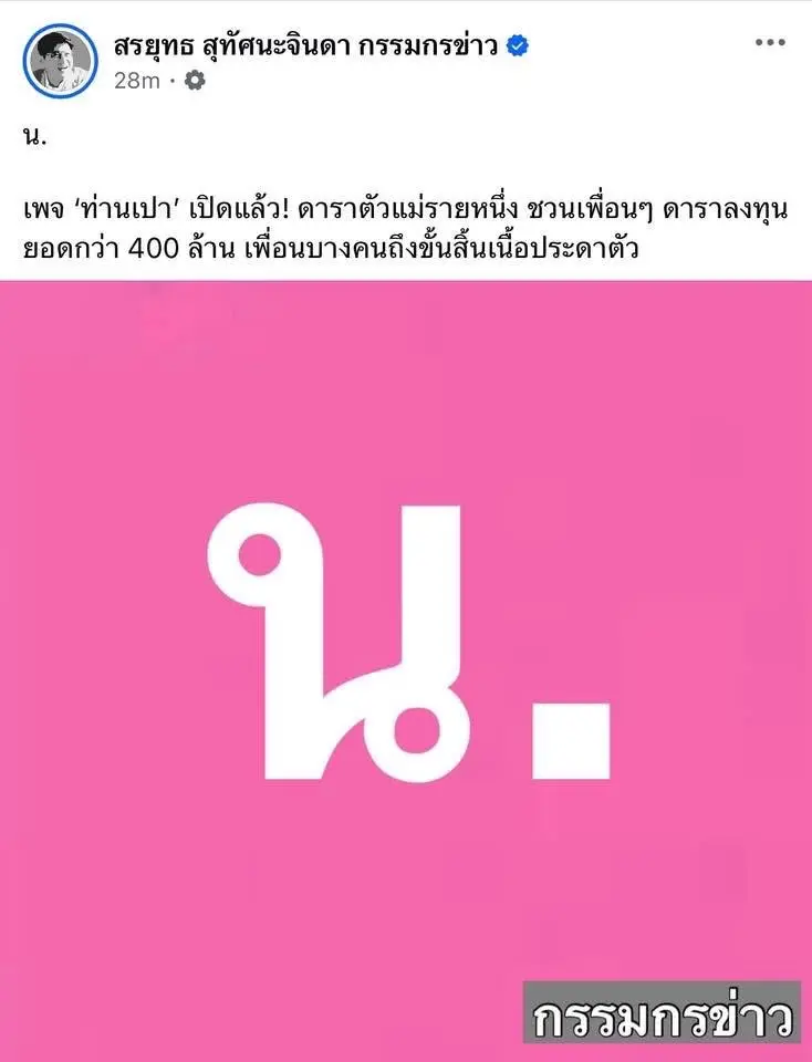เพจ ‘ท่านเปา’ เปิดแล้ว! ดาราตัวแม่รายหนึ่ง ชวนเพื่อนๆ ดาราลงทุน ยอดกว่า 400 ล้าน เพื่อนบางคนถึงขั้นสิ้นเนื้อประดาตัว”