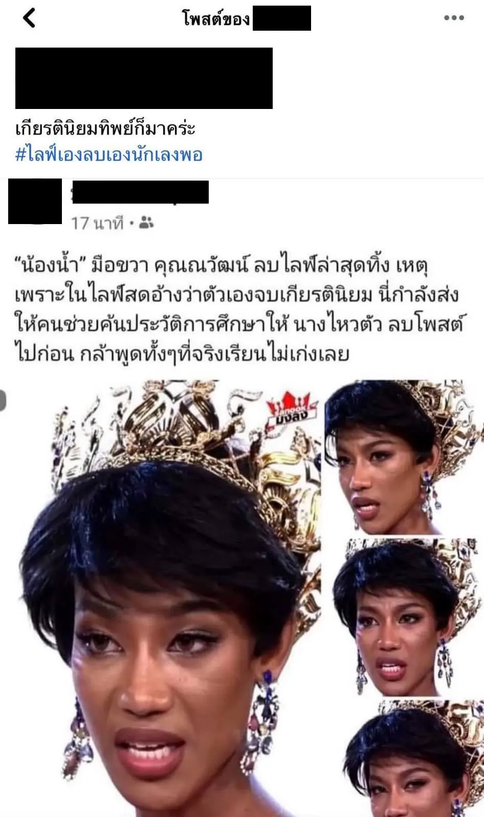 กระทั้งล่าสุดมีผู้ใช้เฟสบุ๊ครายนึ่งออกมาโพสต์ ว่า “น้องน้ำ” มือขวา คุณณวัฒน์ ลบไลฟ์ล่าสุดทิ้ง เหตุเพราะในไลฟ์สดอ้างว่าตัวเองจบเกียรตินิยม นี่กำลังส่งให้คนช่วยค้นประวัติการศึกษาให้ นางไหวตัวลบโพสต์ไปก่อน กล้าพูดทั้งๆที่จริงเรียนไม่เก่งเลย