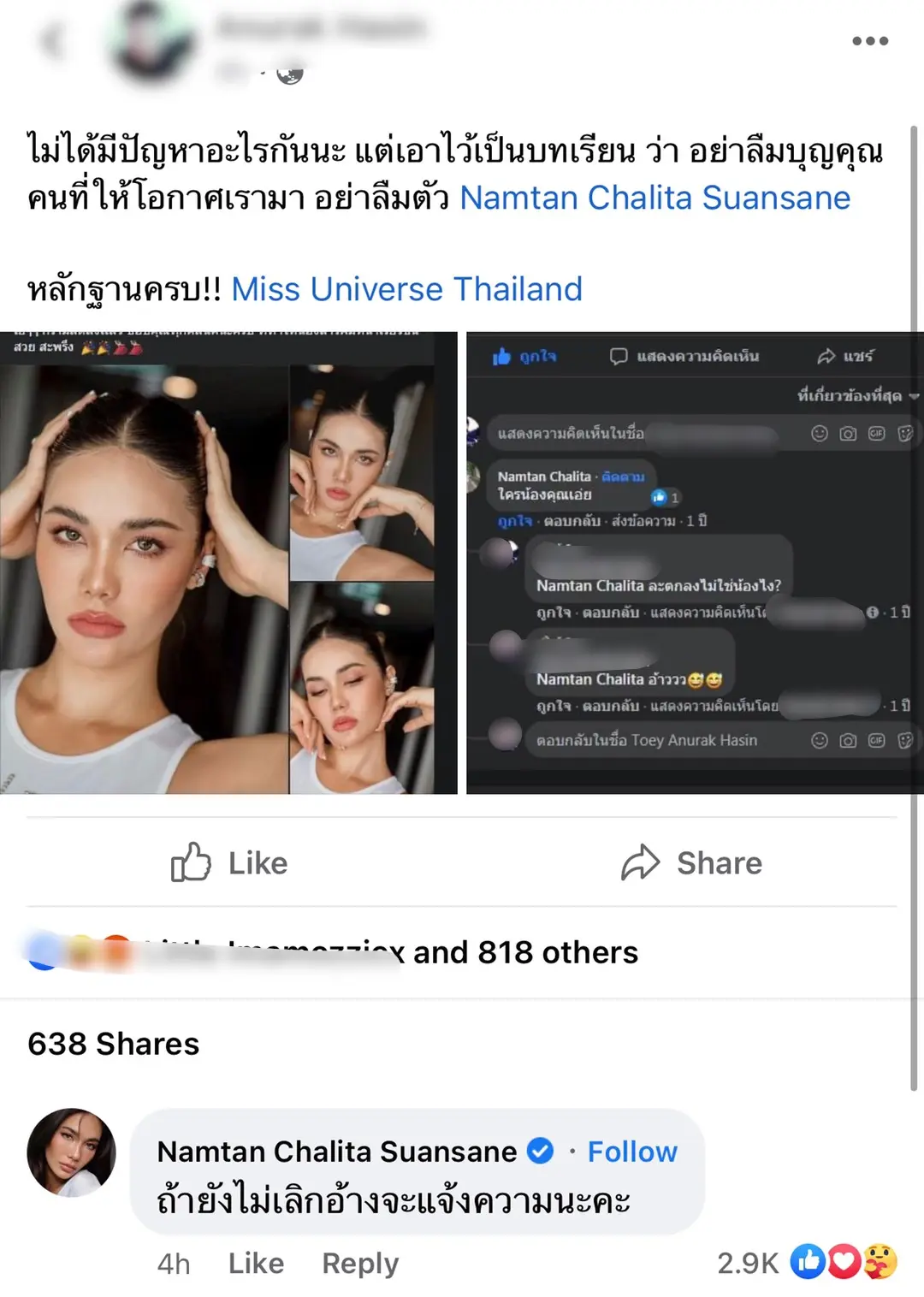 แต่จู่ๆก็กลับมาเป็นประเด็นอีกจนได้ เมื่อชาวเน็ตคนดังกล่าวดันเอาโพสต์เก่า1ปีที่แล้ว กลับมาโพสต์อีกครั้งพร้อมแท็ก น้ำตาล ในครั้งนี้ด้วยว่า “ไม่ได้มีปัญหาอะไรกันนะ แต่เอาไว้เป็นบทเรียนว่า อย่าลืมบุญคุณคนที่ให้โอกาสเรามา อย่าลืมตัว” ทำเอาน้ำตาลถึงปรี๊ดแตก รีบเข้าไปคอมเมนต์ต่อว่า “ถ้ายังไม่เลิกอ้างจะแจ้งความนะคะ” ซึ่งทางชาวเน็ตคนดังกล่าวก็ไม่แผ่วสวนกลับอีกว่า “แจ้งเลย สย.ไหนก็ได้ อีเว- เดี๋ยว-ู จะแจ้งความกลับดำเนินคดีมึ-ให้ถึงที่สุด” และน้ำตาลก็เข้ามาตอบส่งท้ายว่า “ข้อหาอะไรไม่ทราบ” หลังจากนั้นชาวเน็ตคนดังกล่าวก็ไม่ได้เข้ามาตอบโต้ใดๆ