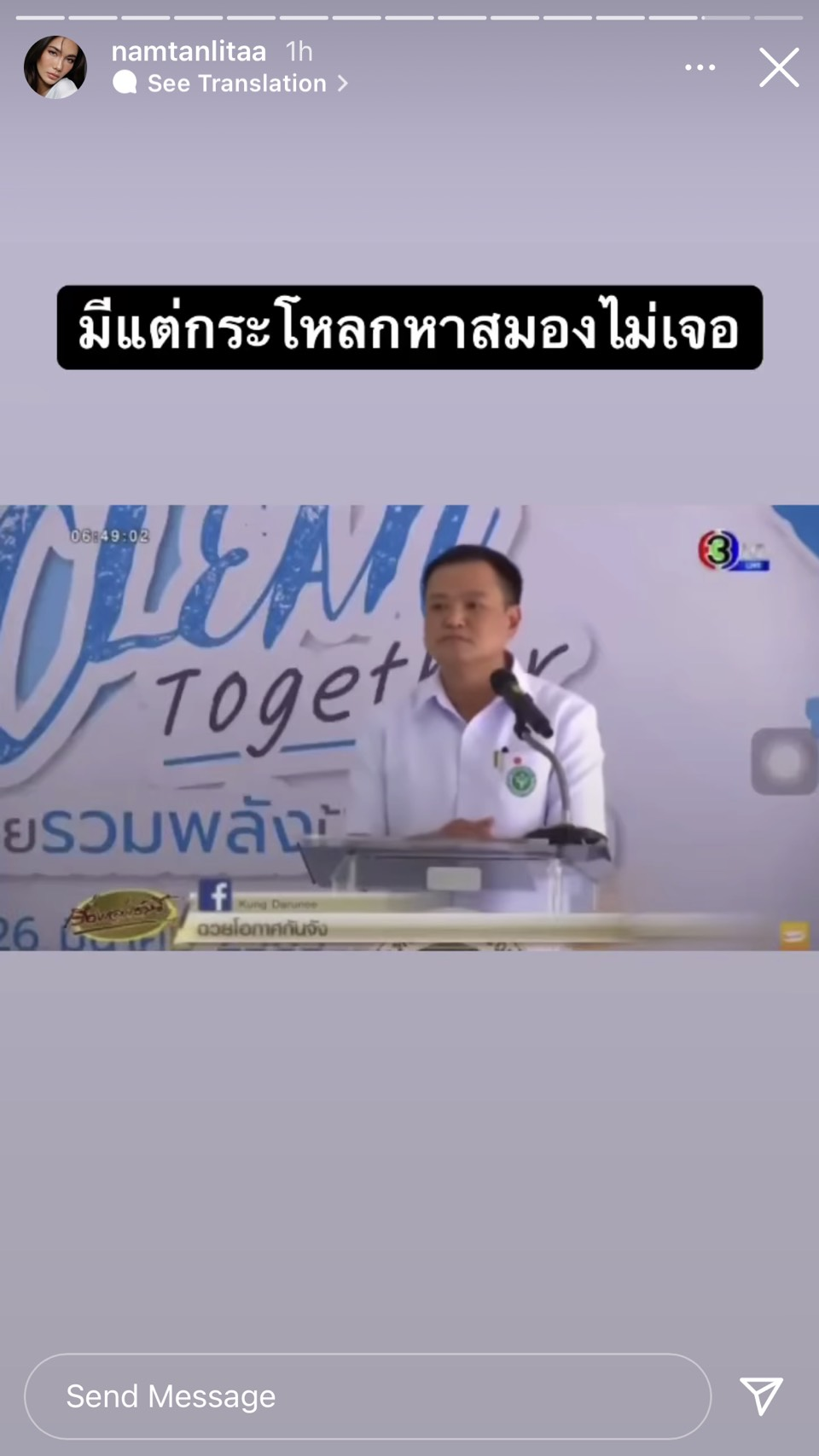 ทั้งนี้ทางด้านของ น้ำตาล ชลิตา ส่วนเสน่ห์ ที่ได้เห็นภาพดังกล่าวเหมือนกัน ก็ทนไม่ไหวจนต้องออกมาเเสดงความคิดเห็นผ่านทางสตอรี่ไอจีของตนเอง ไปยังรัฐบาลว่า มีคนที่กำลังเดือนร้อน ที่กำลังต้องการการช่วยเยอะขนาดนี้ ทำไมรัฐบาลเองยังนอนหลับได้ลง
