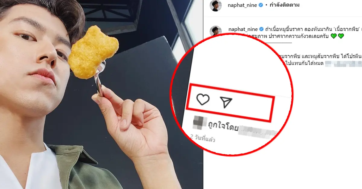 จังหวะพอดีกับที่ทางด้านของ นาย ณภัทร นักแสดงหนุ่ม ที่ก็ได้ออกมาโพสต์โฆษณาสินค้าชนิดหนึ่ง ที่เจ้าตัวบอกว่าเป็นเนื้อสัตว์ที่ทำมาจากพืช ใช้กินทดแทนในช่วงที่เนื้อสัตว์จริงมีราคาที่พุ่งสูงขึ้น