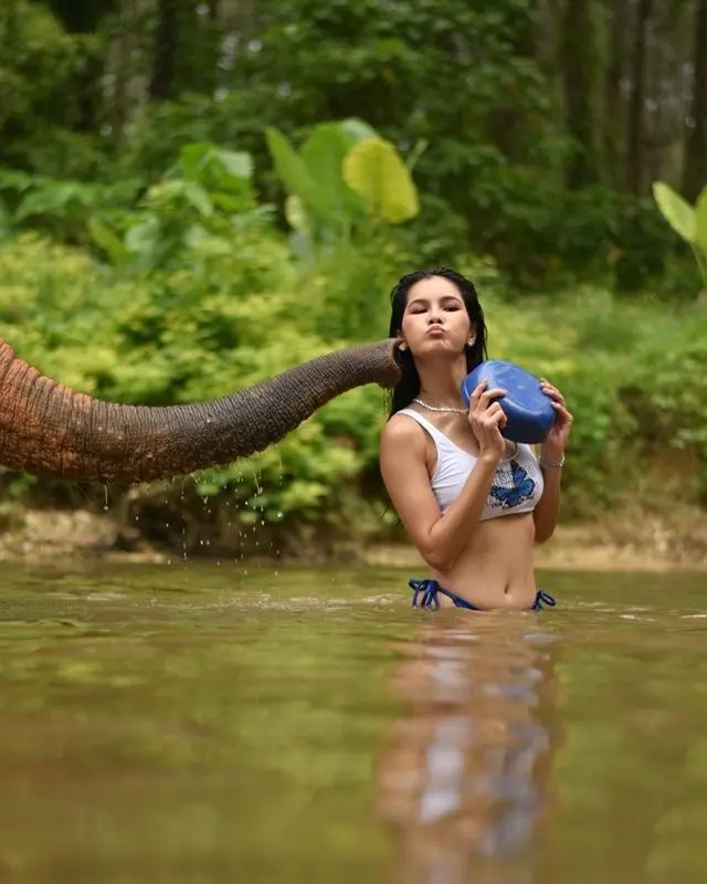 น้องแน๊ต เกศริน สาดความเซ็กซี่ต่อเนื่อง ล่าสุดโชว์โมเมนต์อาบน้ำ น้องช้าง ท่ามกลางวิวธรรมชาติ พร้อมแคปชันที่อ่านแล้วไม่เป็นสองรองใคร