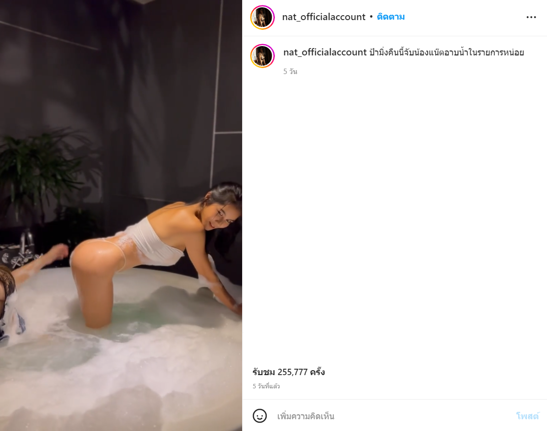 ทำเอาอินสตาแกรมกลับมาร้อนระอุอีกครั้ง ภายหลังจากที่นางแบบตัวแม่อย่างน้อง แน๊ต เกศริน ได้แจกความสดชื่นให้พอกระชุ่มกระชวยหัวใจ ด้วยการปล่อยคลิปวิดีโอขณะอยู่ในอ่างอาบน้ำ พร้อมโชว์ลีลาส่ายสะโพกโยกย้ายแบบยั่ว ๆ บด ๆ จนแฟน ๆ ใจสั่นกันทั้งโซเชียล
