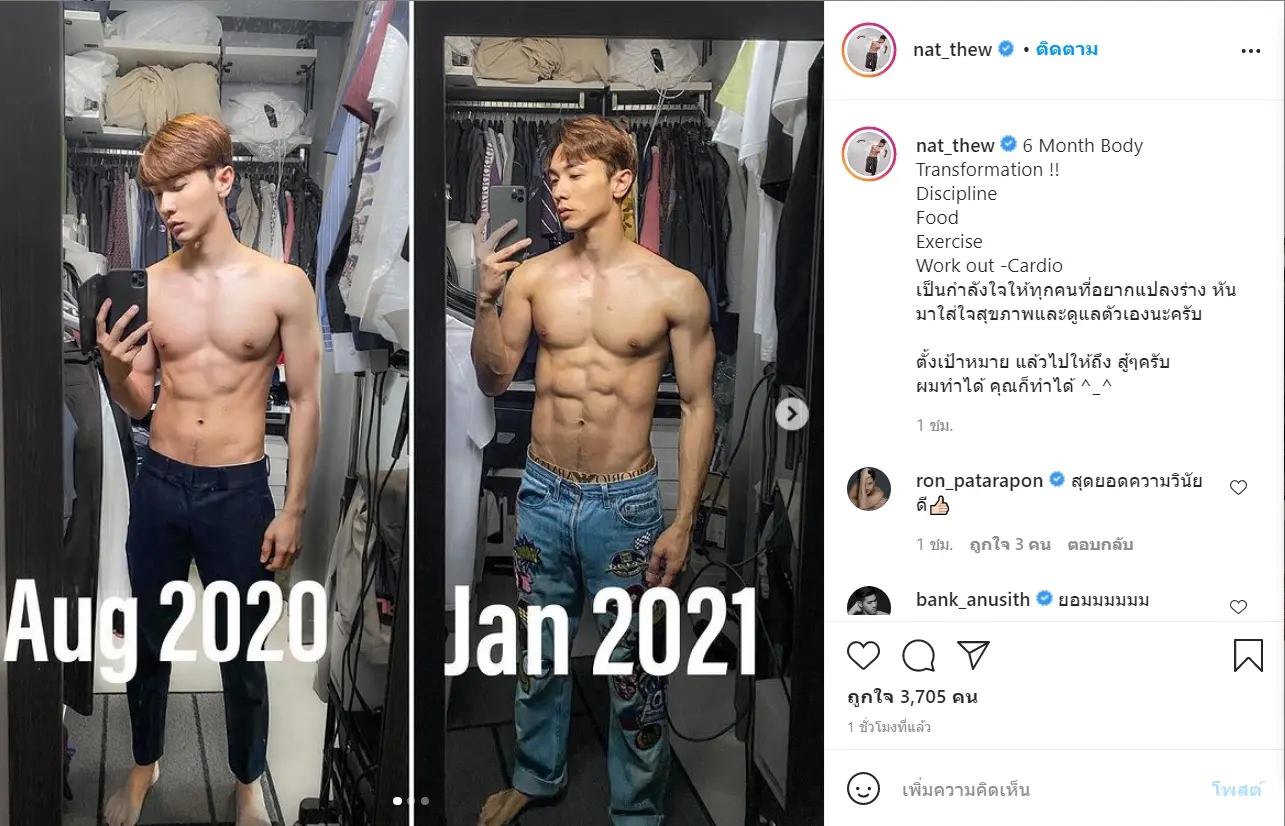 โดยล่าสุด ณัฏฐ์ ได้ออกมาเผยหุ่นสุดเป๊ะหลังจากที่เจ้าตัวได้พยายามออกกำลังกายมานานกว่า 6 เดือน จนทำให้ได้หุ่นเป็นที่น่าพอใจทั้งนี้เจ้าตัวก็ได้ออกมาโพสต์บนอินสตาแกรมส่วนตัวพร้อมระบุว่า “6 Month Body Transformation !!