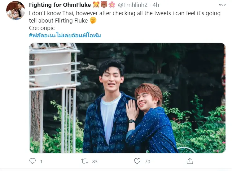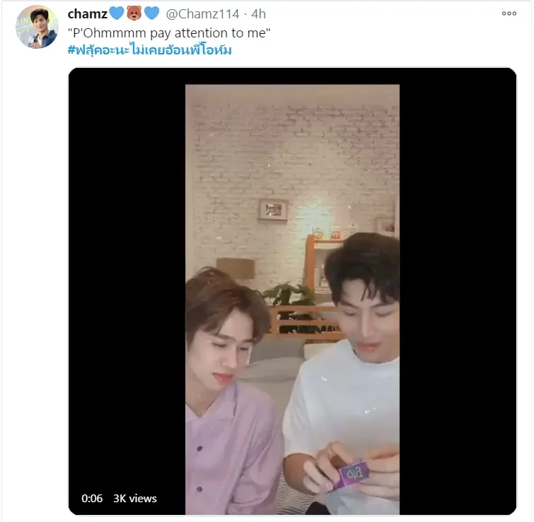 ล่าสุดเมื่อวันที่ 4 ตุลาคม เหล่าแฟนคลับของทั้งคู่ต่างก็พากันเทรนด์แท็ก #ฟลุ้คอะนะไม่เคยอ้อนพี่โอห์ม จนขึ้นเทรนด์อันดับหนึ่ง และไม่พอยังได้มีการเผยโมเมนต์หวานๆระหว่างทั้ง๕ุ่อีกด้วย เรียกได้ว่าคนน้องนั้นคอยอ้อนคนพี่อยู่ตลอด คนพี่ก็ยิ้มและให้น้องอ้อนอยู่บ่อยๆเรียกได้ว่าเป็นอีกหนึ่งคู่ที่ใครๆก็อยากให้เป็นคู่จริงไม่ใช่เพียงแค่คู่จิ้นอย่างแน่นอน