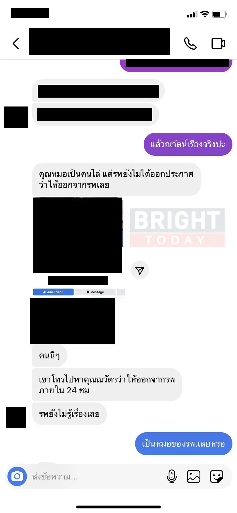 ล่าสุดมีแชทปริศนาหลุดออกมายืนยันว่ามีหมอไล่ ณวัฒน์ จริงตามที่ออกมาไลฟ์สด พร้อมทั้งในแชทยังบอกอีกว่า คุณหมอคนนี้เป็นคนไล่เอง ทั้งที่โรงพยาบาลยังไม่ได้ออกประกาศใดๆทั้งสิ้น โดยคุณหมอรายนี้โทรไปหา ณวัฒน์ บอกว่าให้ออกจากโรงพยาบาลภายใน 24 ชั่วโมง ทั้งที่ทางโรงพยาบาลไม่รู้เรื่อง