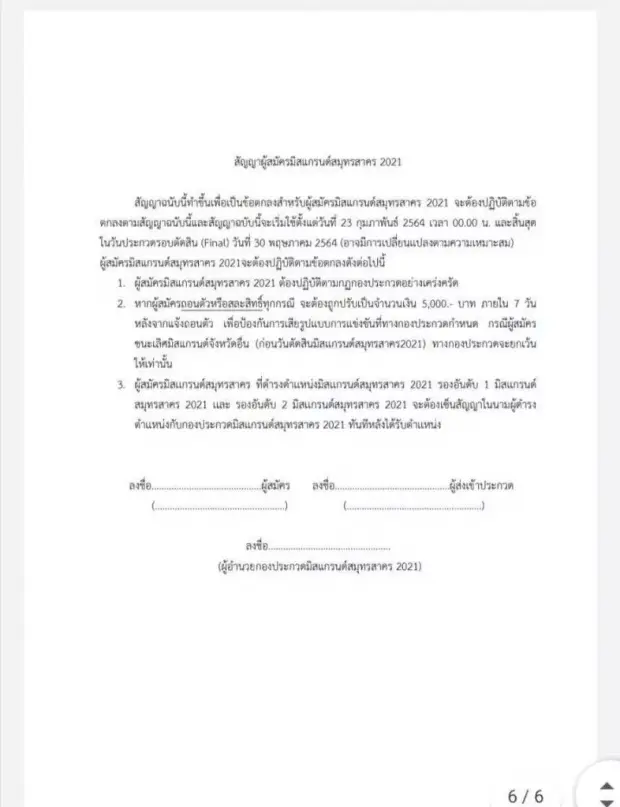 ยืนยันไม่ได้บังคับให้ผู้เข้าประกวดขึ้นเวทีแต่การทำธุรกิจต้องมีข้อตกลง ยอมรับจำนวนเงินปรับผู้ที่สละสิทธิ์เป็นไปตามข่าว ก่อนหน้านี้จ่าย 5,000 บาทตามสัญญาแต่หลังจากเกิดเหตุการณ์ผู้เข้าประกวดสละสิทธิ์ไป 4 รายทำให้เกิดผลกระทบต่อผู้สนับสนุน ทางกองประกวดจึงต้องปรับสัญญาเป็น 60,000 บาท ซึ่งผู้เข้าประกวดทุกคนรับทราบและให้ผู้เข้าประกวดทุกคนแสดงผลตรวจและกักตัวก่อนทำการแข่งขันและหากใครไม่มีผลตรวจกองก็มีจุดบริการให้ ยอมรับจำนวนคนทั้งหมดในงานราวๆ ร้อยกว่าคน แต่ยื่นขออนุญาตจากสำนักงานเขตแล้ว